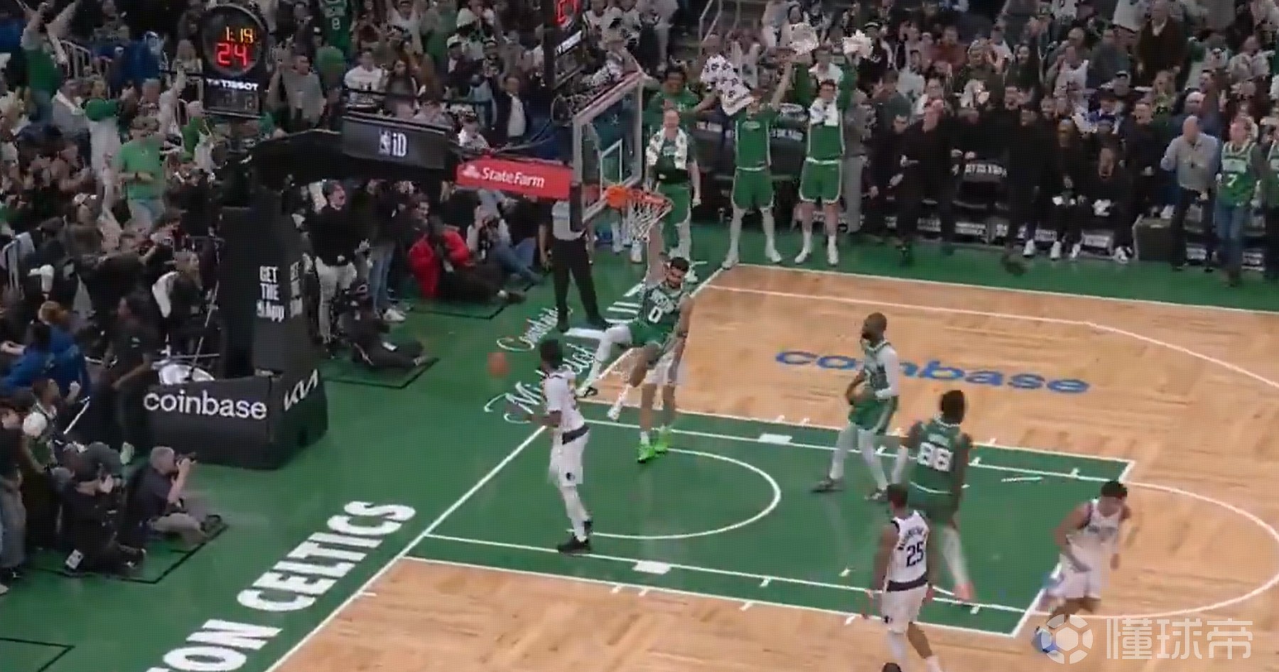 欢迎回到NBA!塔图姆6投0中后补扣+三分连拿5分,半场5+5+5