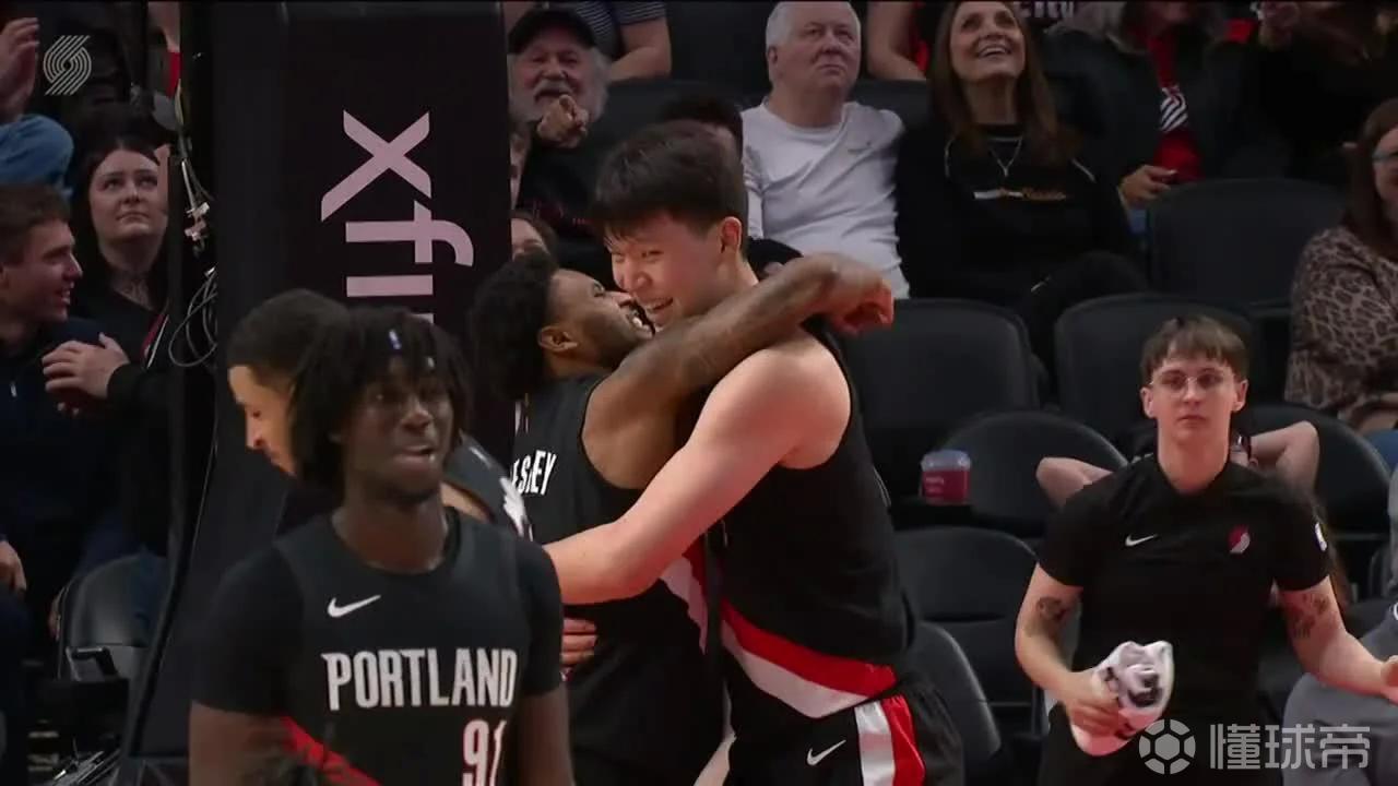 在比赛第四节的一次进攻中,韦斯利变向晃倒对方球员冲入篮下送出助攻,杨瀚森接球双手暴扣,随后韦斯利激动跳起与杨瀚森庆祝。