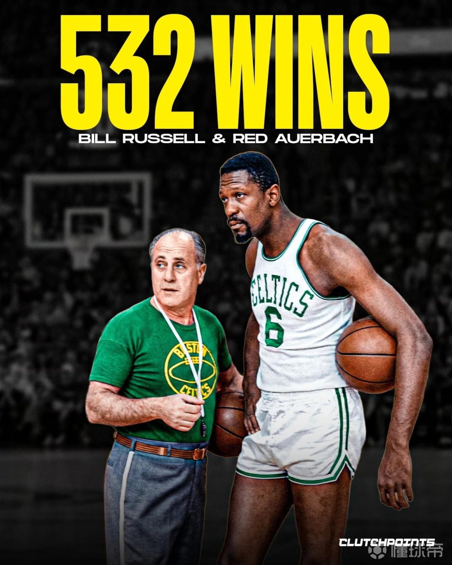 8.比尔-拉塞尔+“红衣主教”奥尔巴赫(凯尔特人) 532场