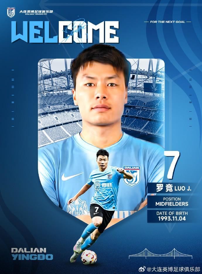 经与球员本人协商一致,球员罗竞正式加盟大连英博足球俱乐部。