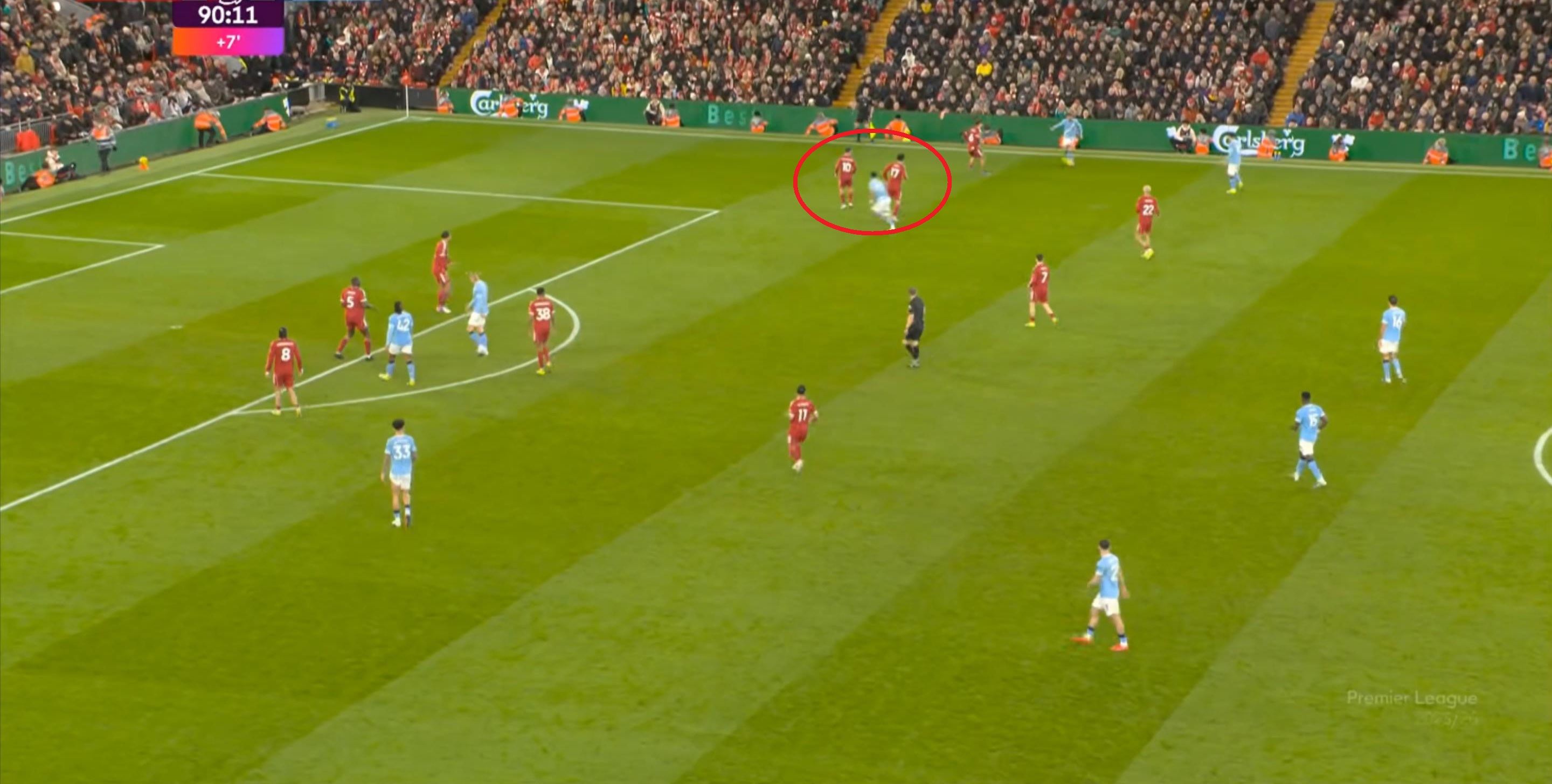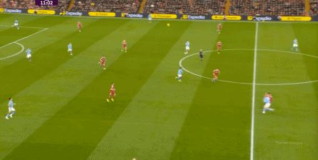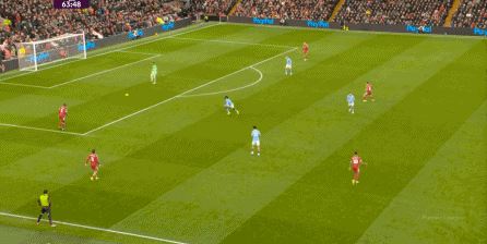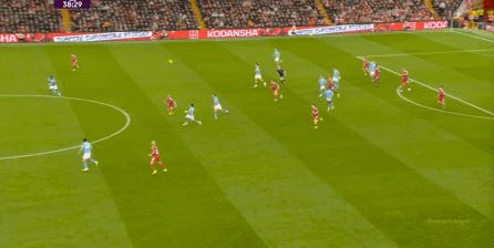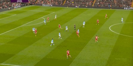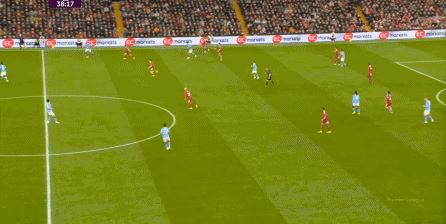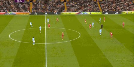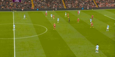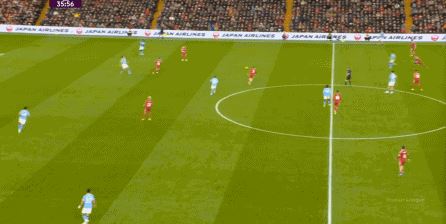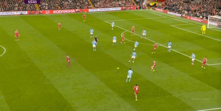 于是,在真的通过进攻画面调动起场上的情绪之后,利物浦开始能将压力施加到曼城的后卫身上了: