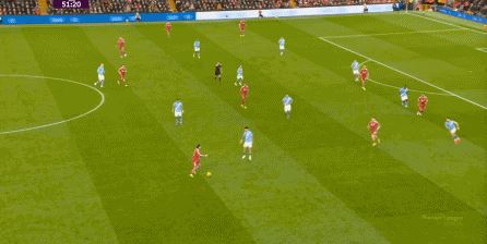 曼城则在中路持续制造着利物浦的盯人和防守空当:
