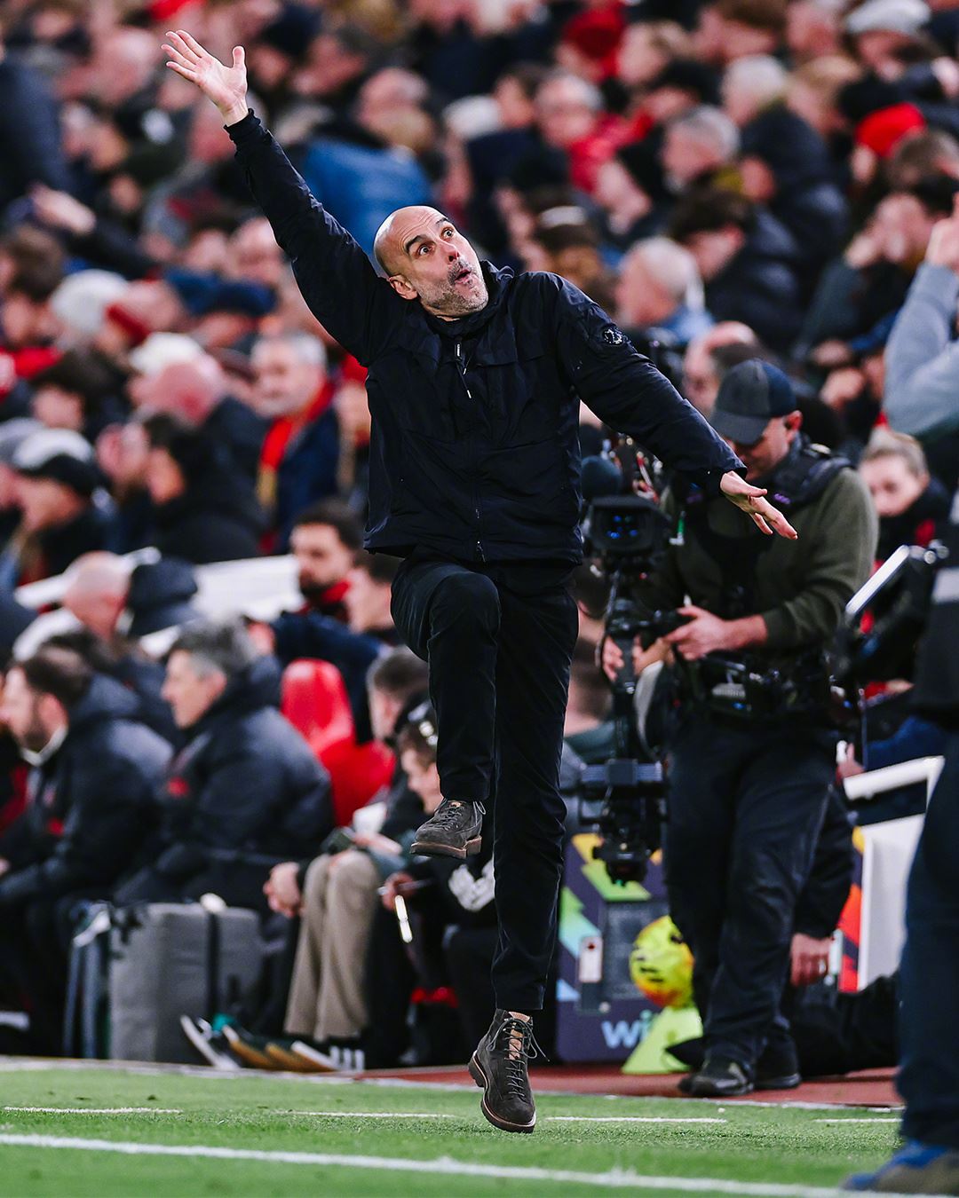 到了下半场,瓜迪奥拉则照常被对手的临场调整弄得不知所措,只能或站着,或坐着,等待命运的审判。