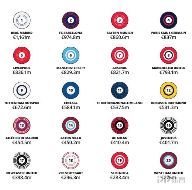 1. 皇家马德里 11.61亿欧