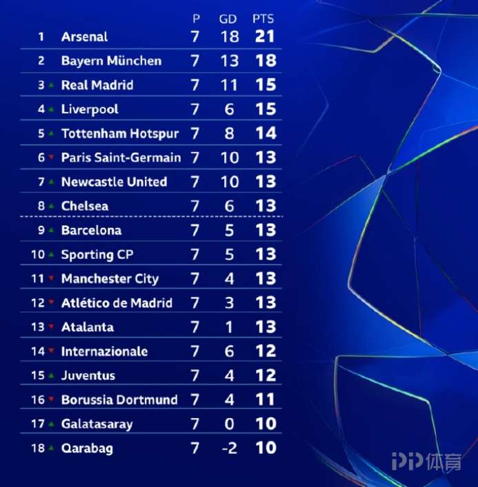 值得一提的是,在本赛季参加欧冠的英超6支球队中,仅曼城目前没有排在前8位置(阿森纳第一,利物浦第四,热刺第五,纽卡第七,切尔西第八)。