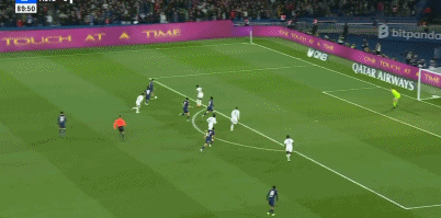 第90分钟,巴黎最后时刻进攻,禁区内包抄球员打门连续踢疵