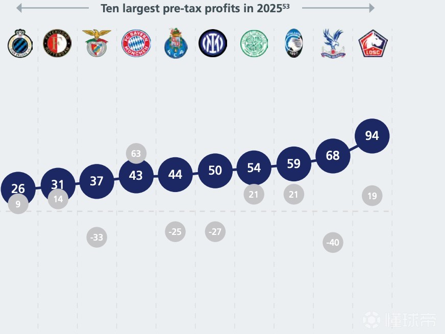 欧足联统计2025年俱乐部税前盈利榜:国米+5000万第5,拜仁第7