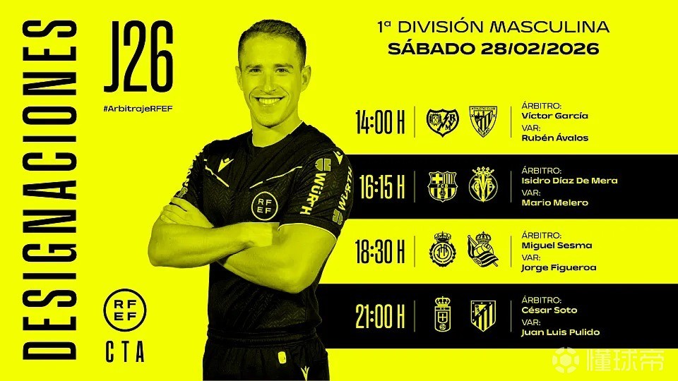 巴列卡诺vs毕尔巴鄂竞技 主裁:维克托-加西亚(VAR:鲁本-阿巴洛斯)