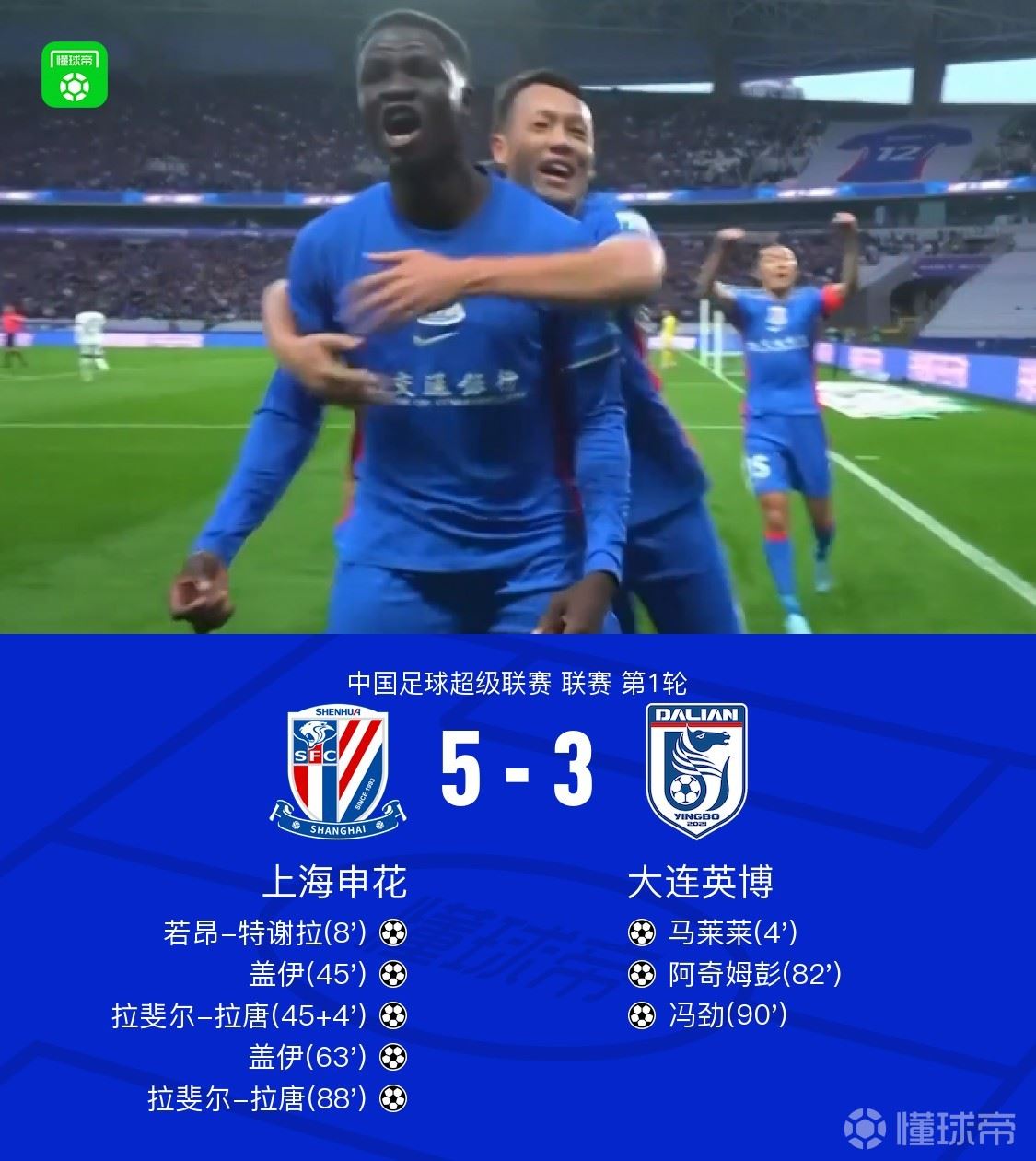 2026赛季中超第一轮,上海申花主场5-3击败大连英博,据统计,这是中超历史上总进球数并列第二多的首轮比赛,仅次于2018年广州德比。
