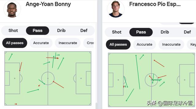 此战,皮奥、博尼两位前锋加起来,在对手半场的成功传球只有区区8次。博尼与对手7次一对一对抗,失败了5次。