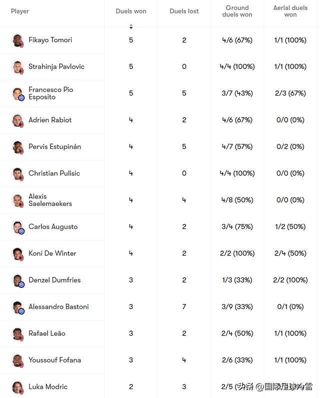 德比双方所有球员的“对抗成功”次数榜单里,没有任何一个国米中前卫能跻身前14名,就是铁证如山。