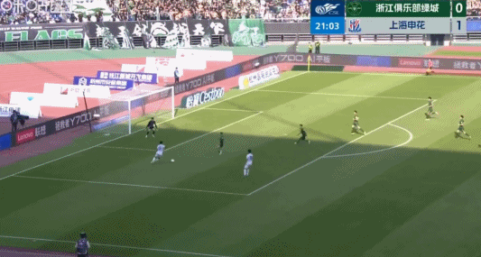 第10分钟,申花角球机会,浙江解围至弧顶,特谢拉不停球撩射破门,申花1-0领先浙江。