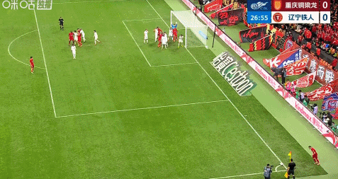 第27分钟,重庆铜梁龙角球开后点,韩镕泽解围中柱险些自摆乌龙。