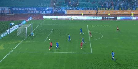 第57分钟,余梦辉带球到弧顶起脚低射破门,南京城市2-1长春亚泰