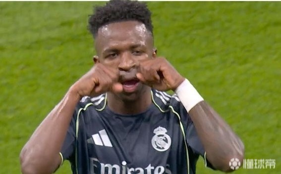 维尼修斯庆祝进球做出哭泣者动作,疑似回应曼城上赛季的Tifo